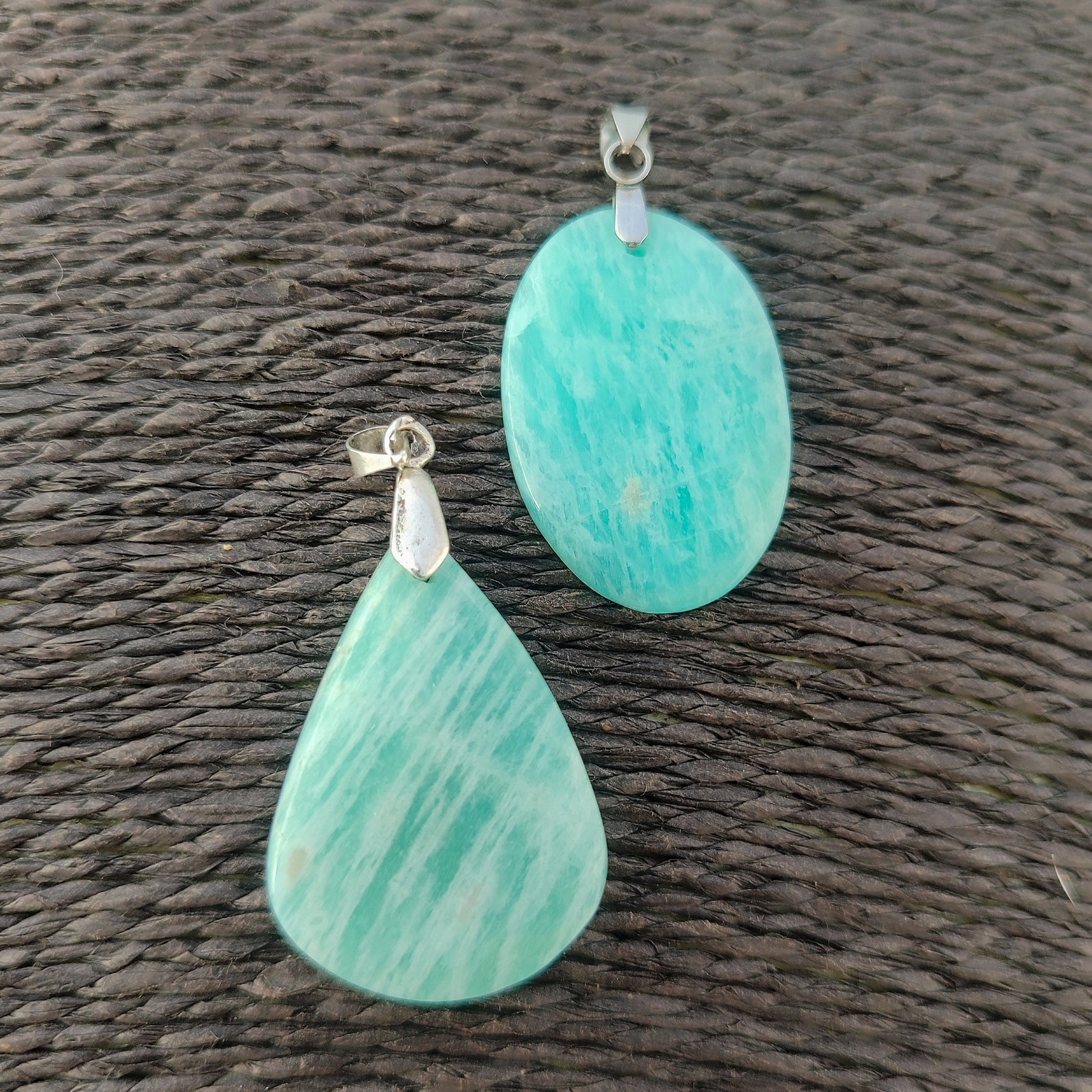 Colgante de amazonita con engarce de alpaca bañado en plata que combina belleza y bienestar. Perfecta para Virgo y Piscis, esta piedra natural es tu aliada para calmar el estrés, disolver la ansiedad y alejar las energías negativas. Además, actúa como protectora contra la contaminación electromagnética, cuidando tu equilibrio energético en el día a día. Un accesorio elegante que va más allá de lo visual: es tu compañera de serenidad.