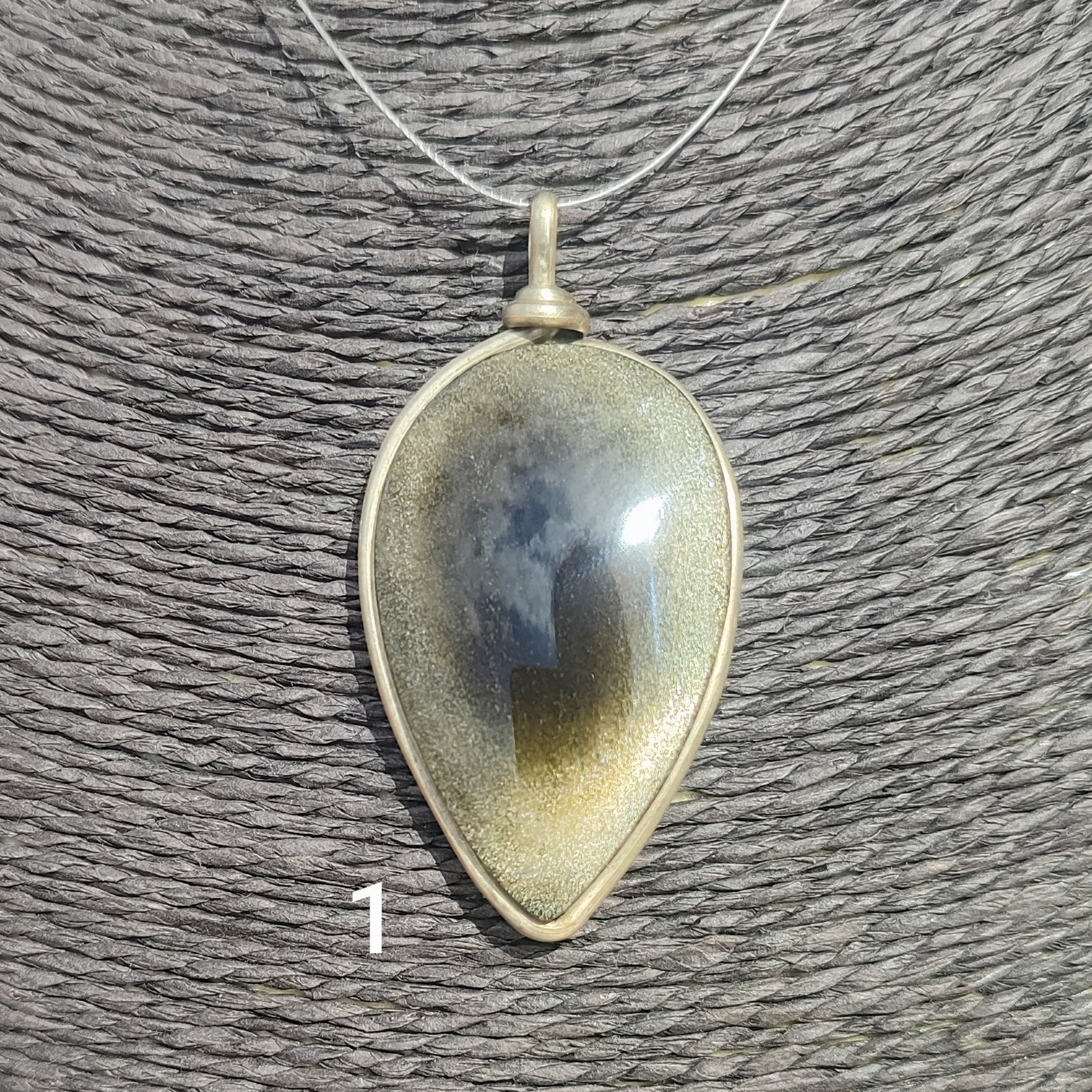This teardrop-shaped golden obsidian pendant is a small treasure measuring 4.5 x 3 cm, lovingly hand-set in nickel silver. Its shine and unique design will add a magical touch to any look, perfect for those who want to carry a little bit of mystery and elegance with them at all times. Ideal for shining with style and personality!