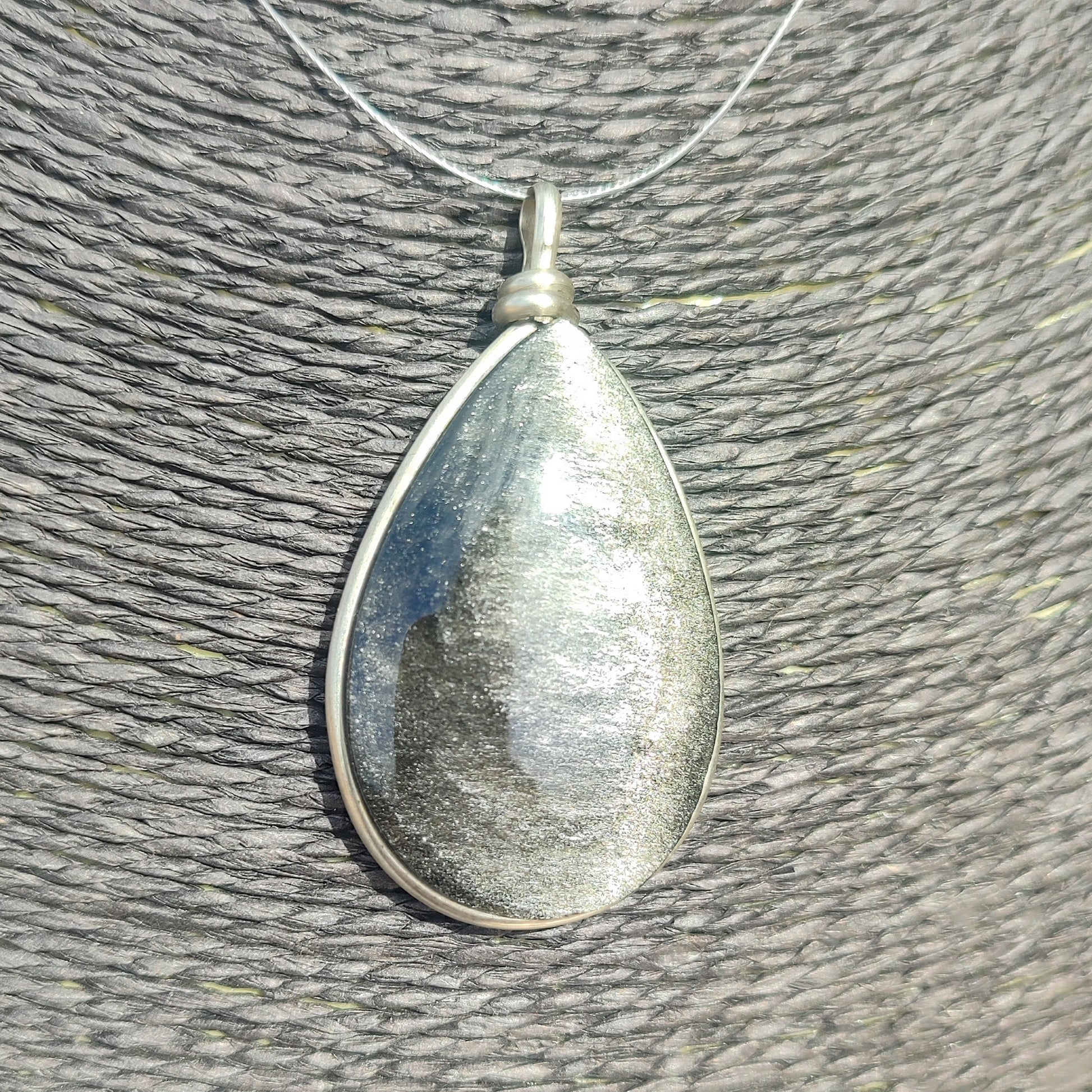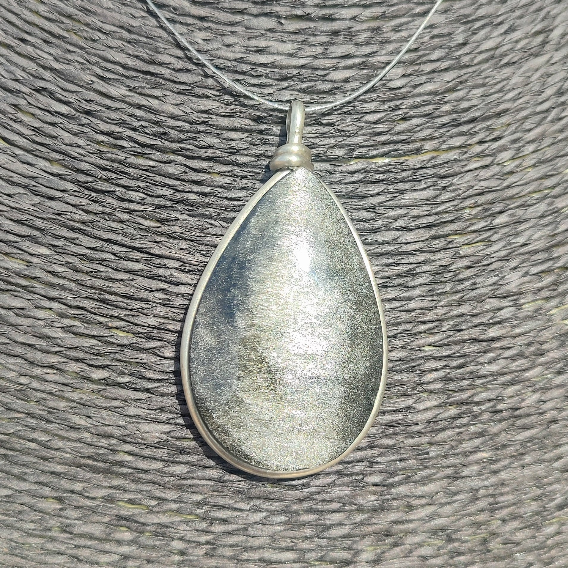 Discover the irresistible charm of this XL teardrop-shaped golden obsidian pendant. Measuring an impressive 4.5 x 3 cm, its intense shine and silvery reflections will instantly captivate you, adding a magical and sophisticated touch to any look. Perfect for those looking for an accessory that combines mystery and elegance with a playful touch. Let yourself be enchanted by its unique light!