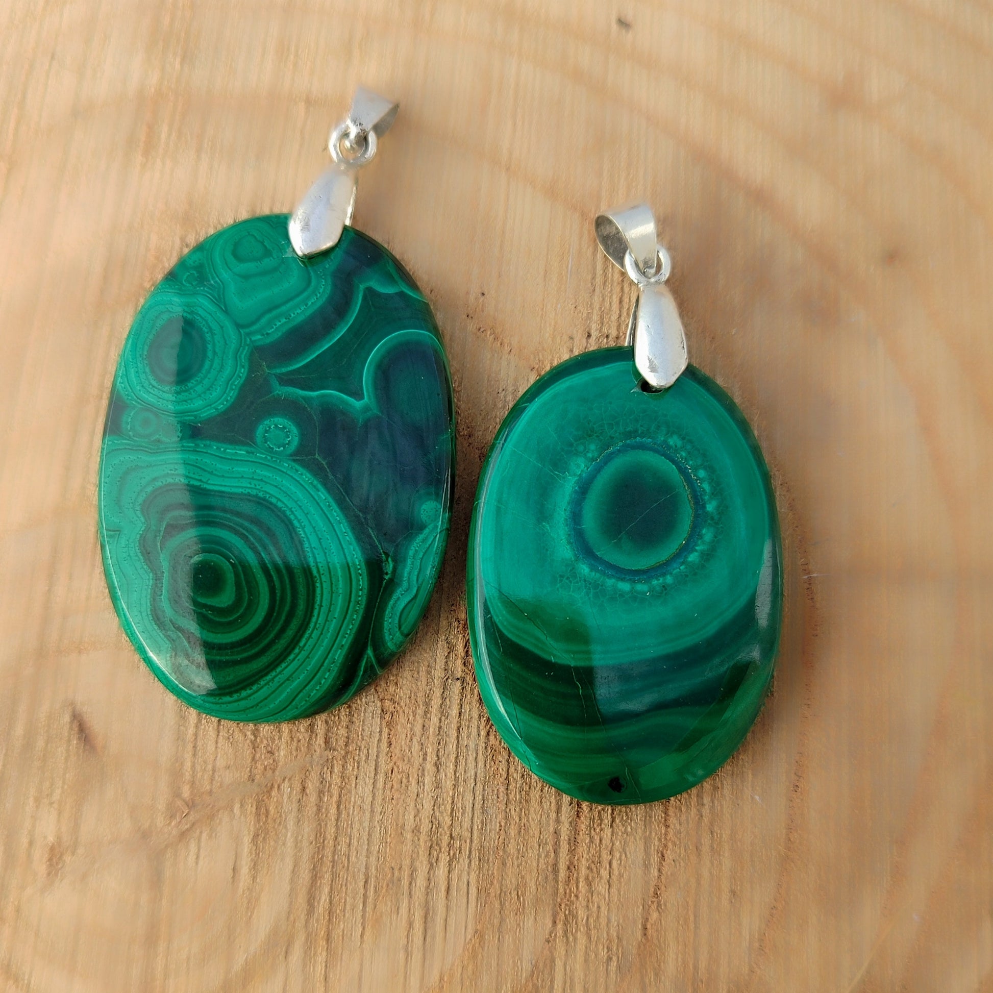 Descubre la magia de nuestros colgantes de malaquita auténtica, perfectos para quienes buscan conectar con su energía interior. Cada pieza brilla con un engarce en alpaca bañada en plata, combinando elegancia natural con un toque sofisticado. Especialmente poderosos para Escorpio, Tauro, Libra y Capricornio, estos colgantes ofrecen protección, equilibrio y una conexión profunda con la tierra. La malaquita, conocida por sus propiedades transformadoras, te acompañará en cada paso de tu camino. Disponibles en dos tamaños: la piedra grande mide 4,5 cm y la más delicada, 3,8 cm. Elige la que resuene con tu espíritu y lleva contigo un pedazo de naturaleza pura.
