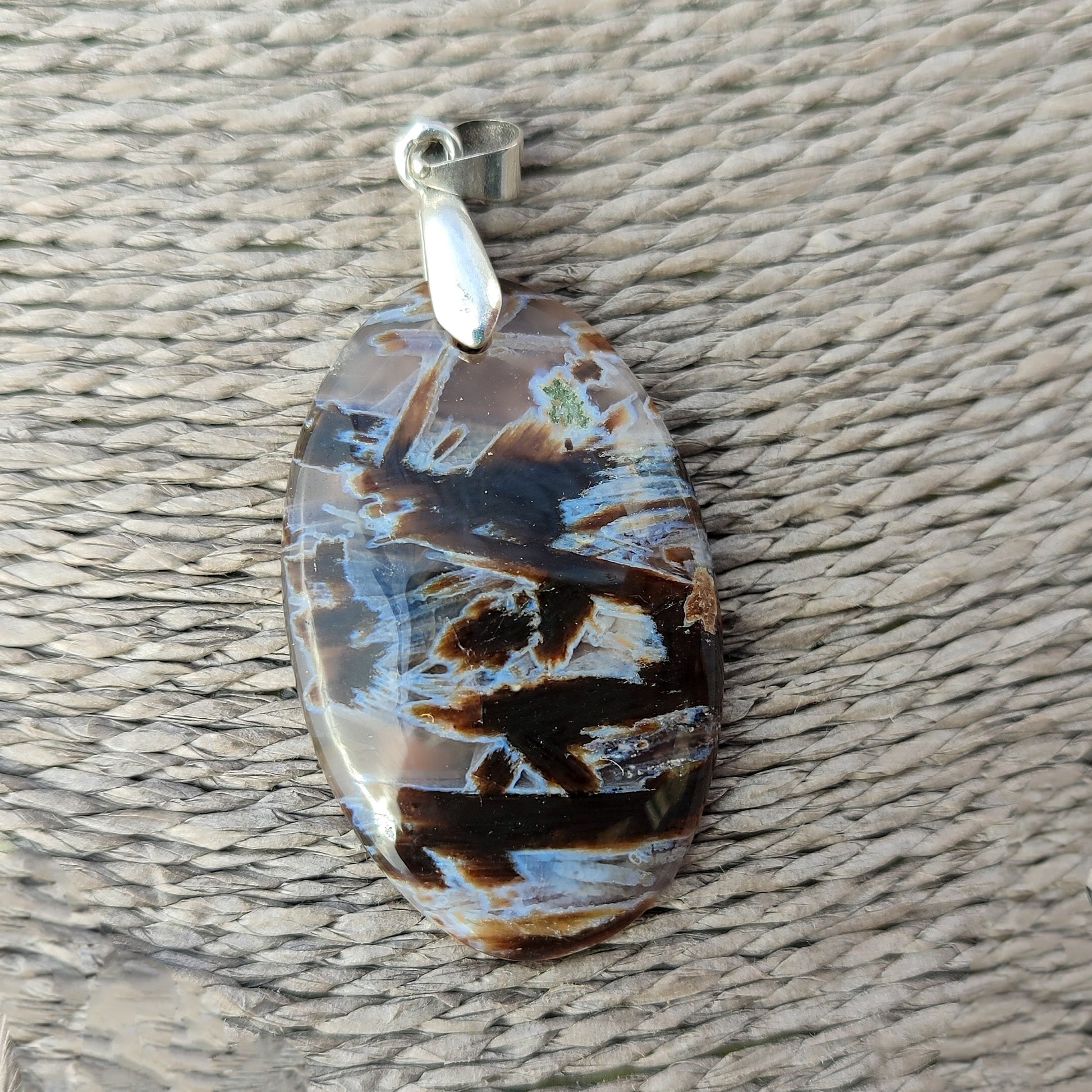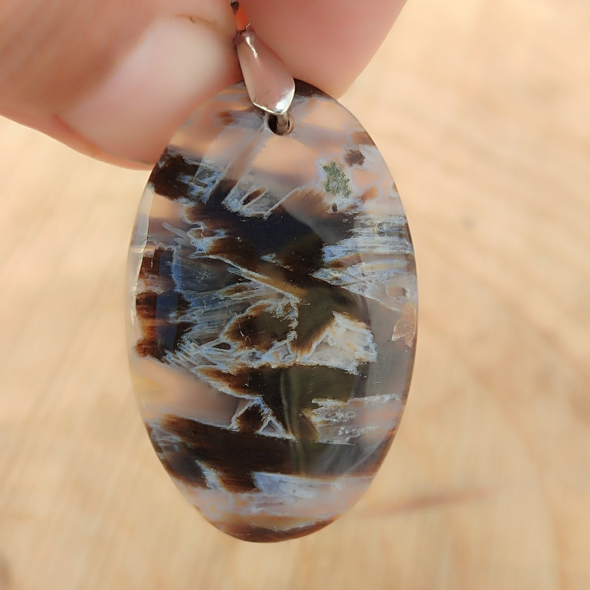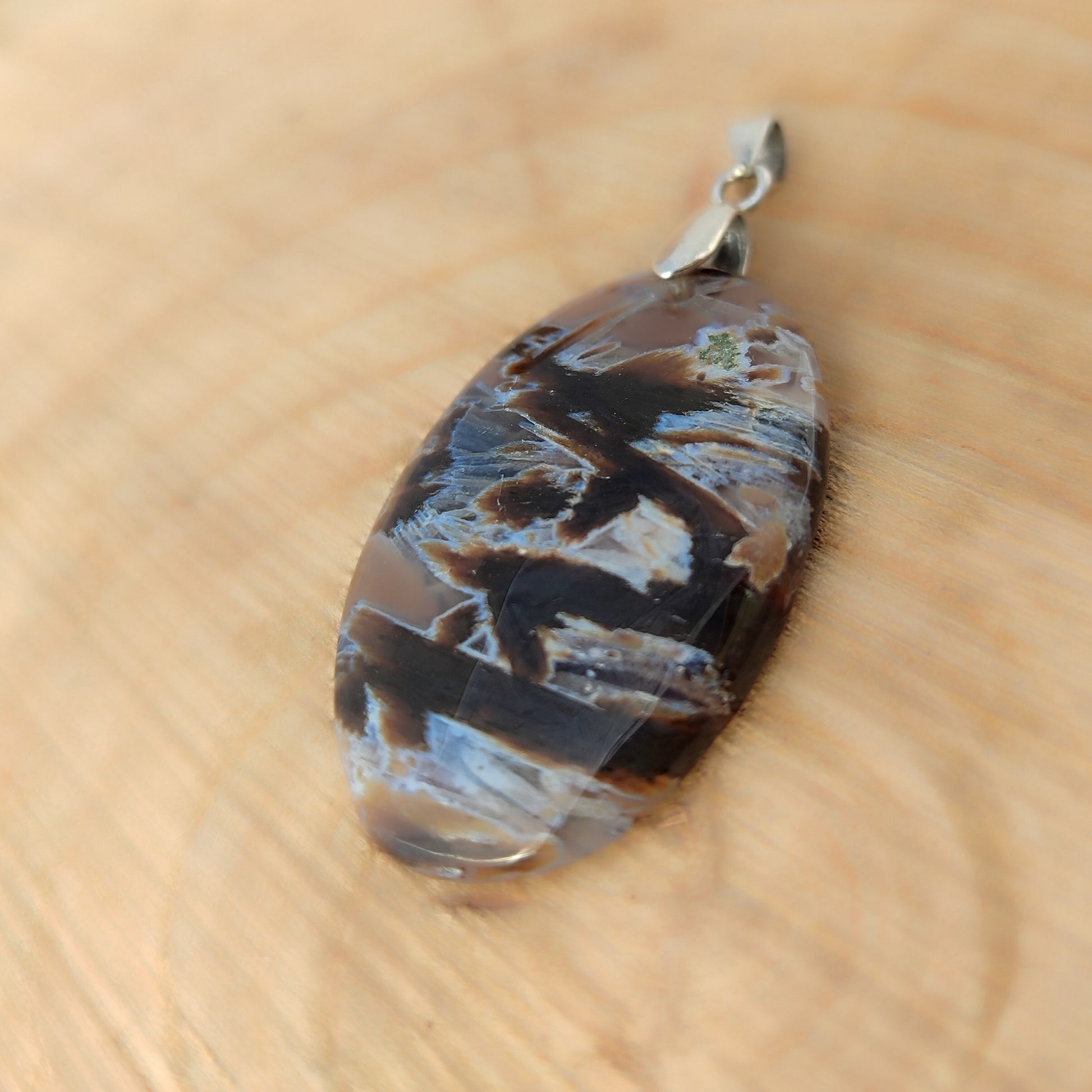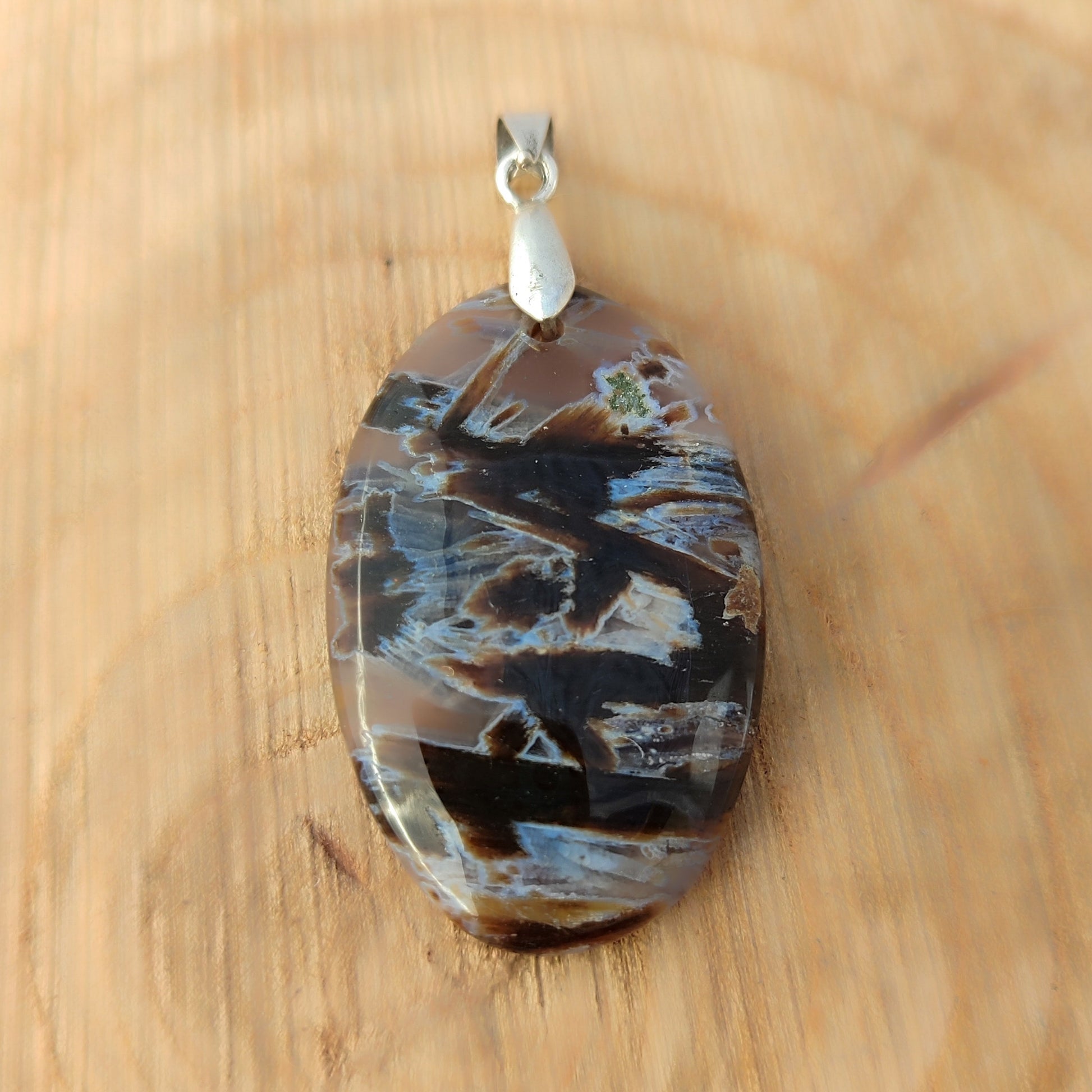 Descubre la magia del ágata de palo turca, una piedra dendrítica tan rara como cautivadora. Sus patrones naturales únicos parecen pequeños árboles suspendidos en cristal, creando una obra maestra que solo la naturaleza puede forjar. Engarzada delicadamente en alpaca con baño de plata, este colgante combina elegancia mineral con artesanía cuidadosa. Perfecta para Virgo y Géminis, esta piedra trae consigo armonía y confianza, acompañándote en cada momento del día. Un accesorio que no solo embellece, sino que también conecta con tu energía.