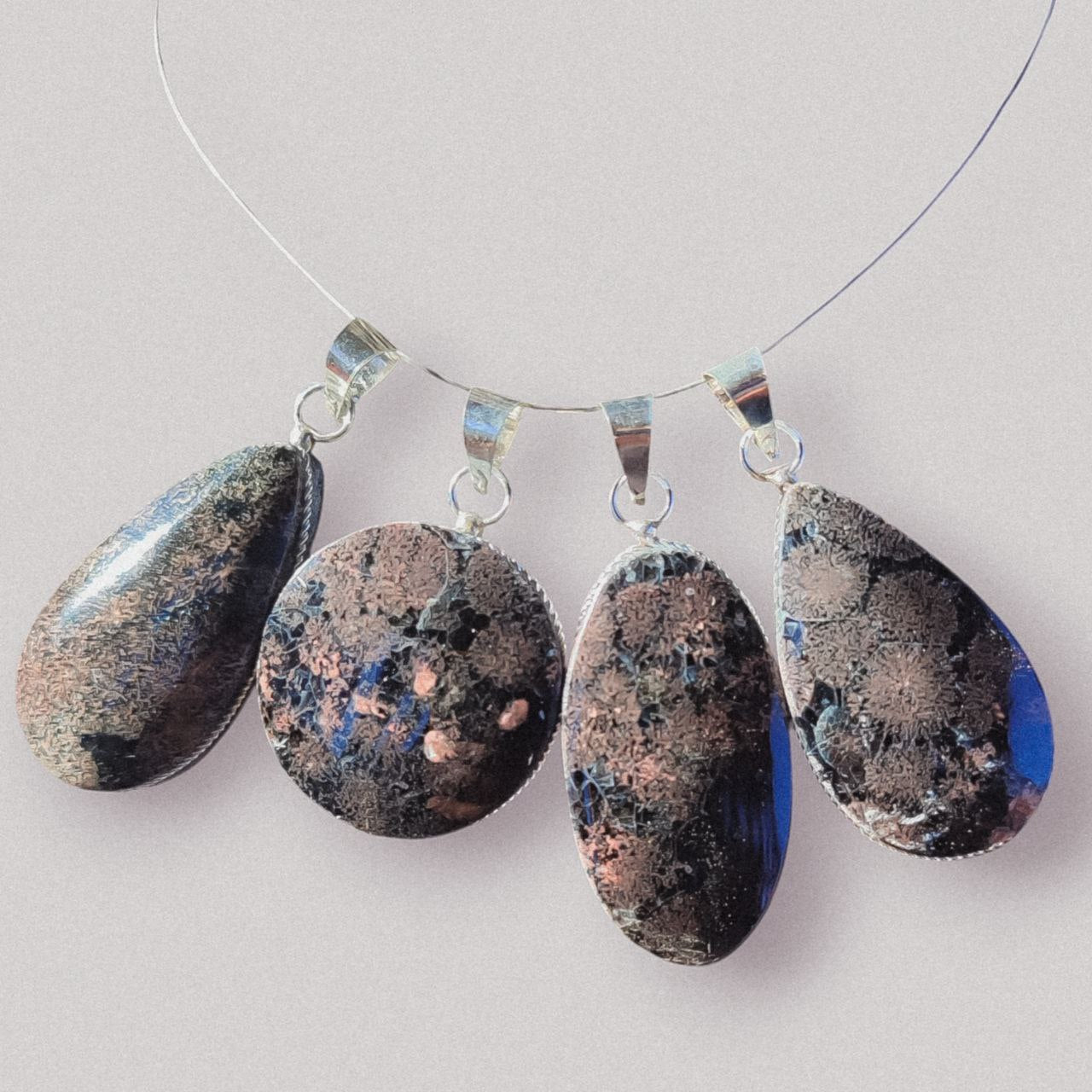 Colgante de calcedonia negra y rosa que desafía toda comparación. Su belleza radica en la combinación cromática perfecta: el negro profundo abraza el rosa vibrante en una danza de contrastes. Engarzada en alpaca bañada en plata, esta joya ha sido diseñada con intención: la piedra toca directamente tu piel para transmitir toda su magia. La calcedonia disipa la melancolía, despierta tu creatividad y amplifica tu intuición. Atrae éxito y armonía mientras transforma cualquier energía negativa en luz positiva. Cuanto más intenso el color, más potente su influencia. Un amuleto que no solo adorna, sino que te acompaña en tu transformación personal.