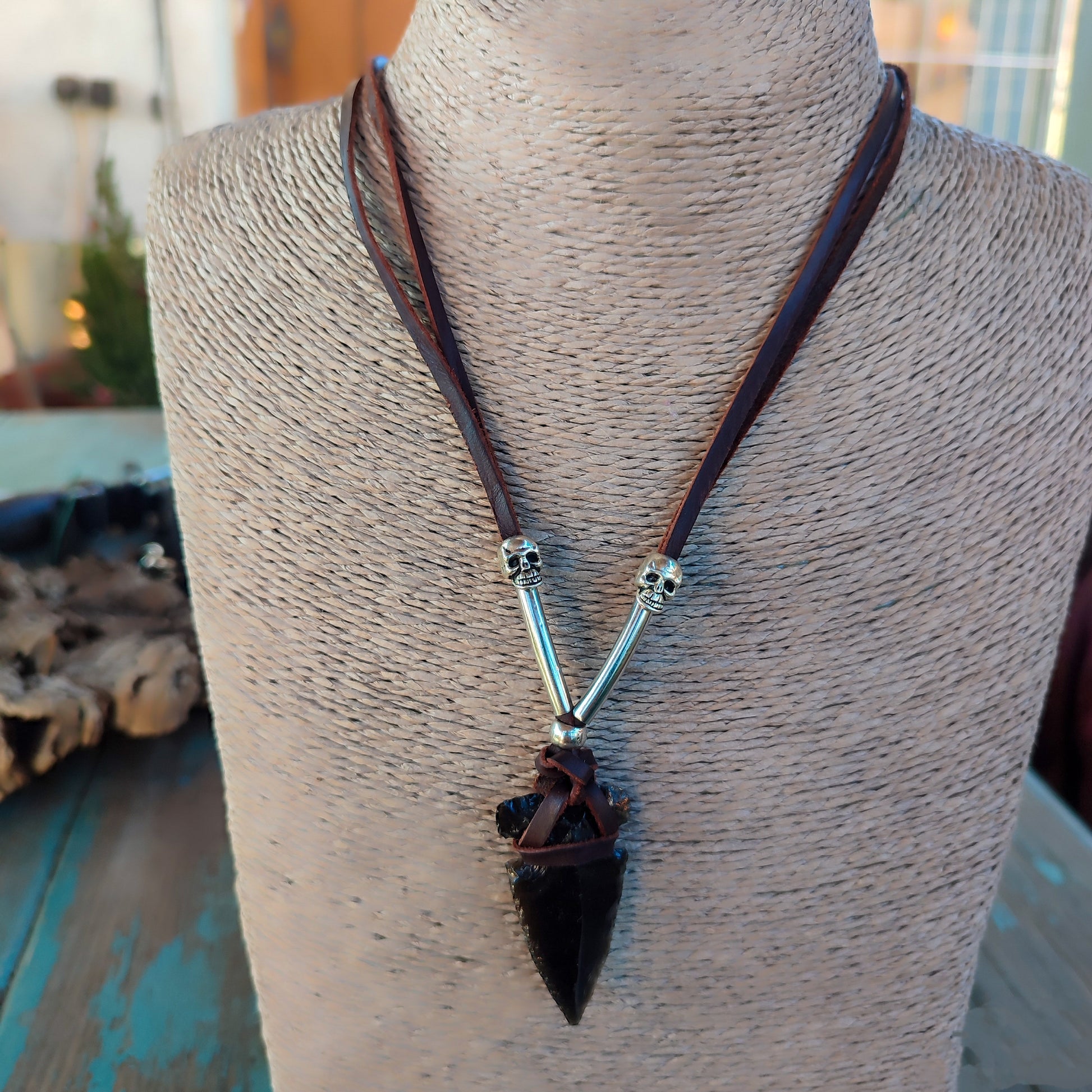Obsidiana en punta de flecha se encuentra con cuero de ternera curtido artesanalmente en España en este collar cautivador. Detalles de calaveras en metal añaden un toque de misterio y rebeldía, mientras que el cierre ajustable garantiza un ajuste perfecto para cualquier cuello. Una pieza versátil que combina la energía protectora de la obsidiana con el encanto bohemio del cuero auténtico. Ideal para quienes buscan accesorios con carácter y alma.