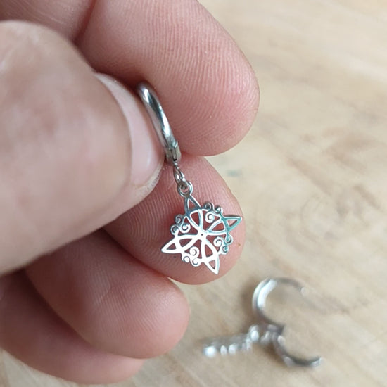 Los Pendientes de Nudo de Bruja son la perfecta combinación de estilo y protección. Hechos con aros de acero resistente, estos pendientes cuentan con un nudo de bruja colgando que representa el poder de la naturaleza. Lleva contigo este símbolo de fuerza y equilibrio en cada ocasión.